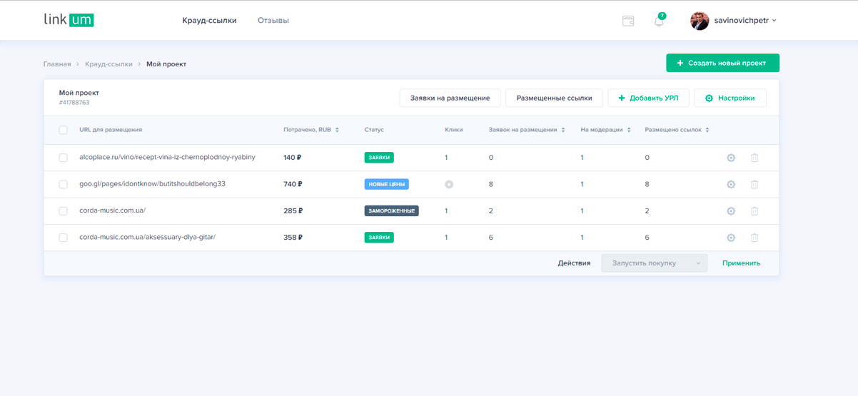 пределах одного проекта, а также есть возможность покупки любого количества, даже 1 ссылку.